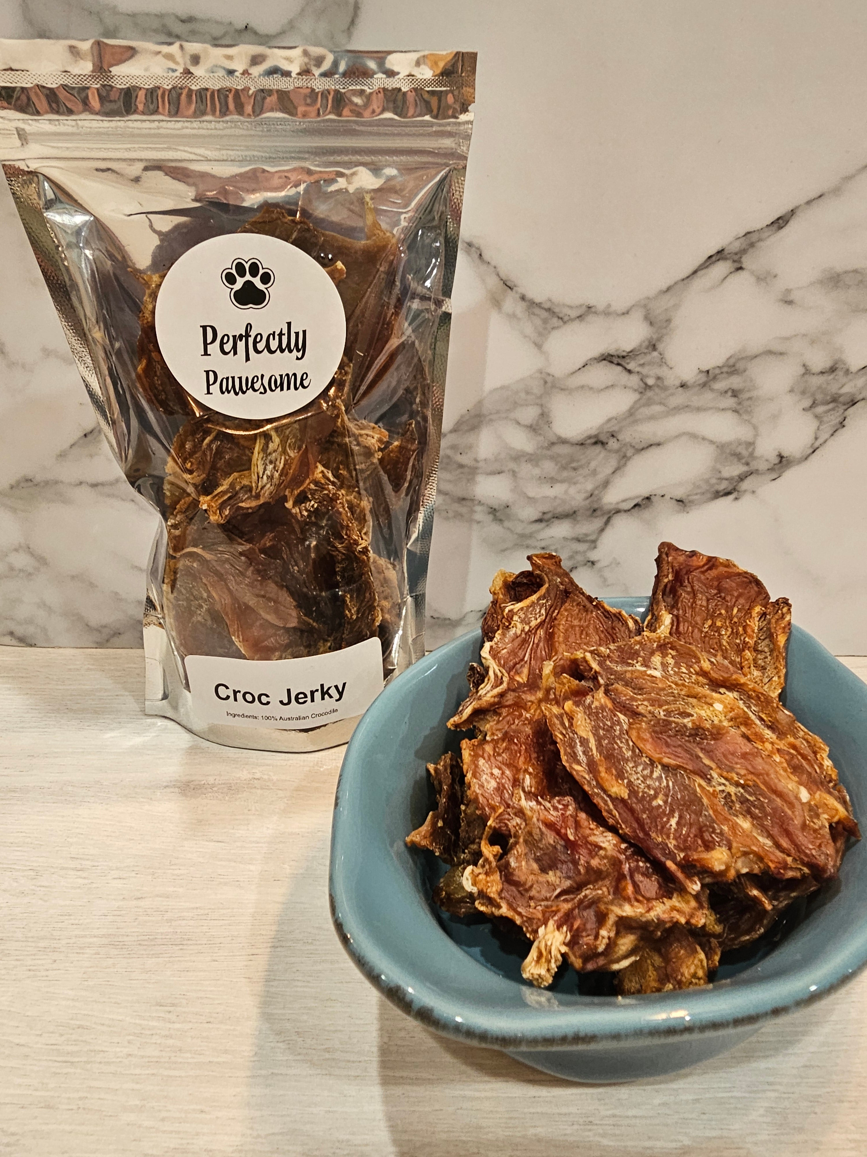 Take treat time totally wild with our 100% Aussie Crocodile Jerky โ€“ a lean, chewy and highly palatable novel protein your doggo will go absolutely croc-mad for! Often called the โ€œchicken of the seaโ€, croc is mild, meaty and incredibly tasty, even for fussy eaters.