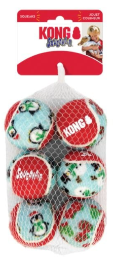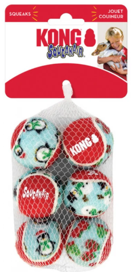 KONG Christmas Holiday SqueakAir Balls 6 pack - Assorted Sizes